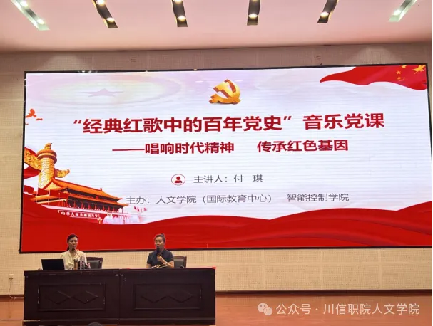 在新中国成立75周年到来之际,为深入贯彻落实党的二十大精神,弘扬红色文化,提高师生们党性修养,9月19日下午,人文学院(国际教育中心)、智能控制学院特地邀请了西南科技大学副教授付琪老师,为学院师生们带来了“经典红歌中的百年党史”音乐党课——唱响时代精神传承红色基因专题讲座。